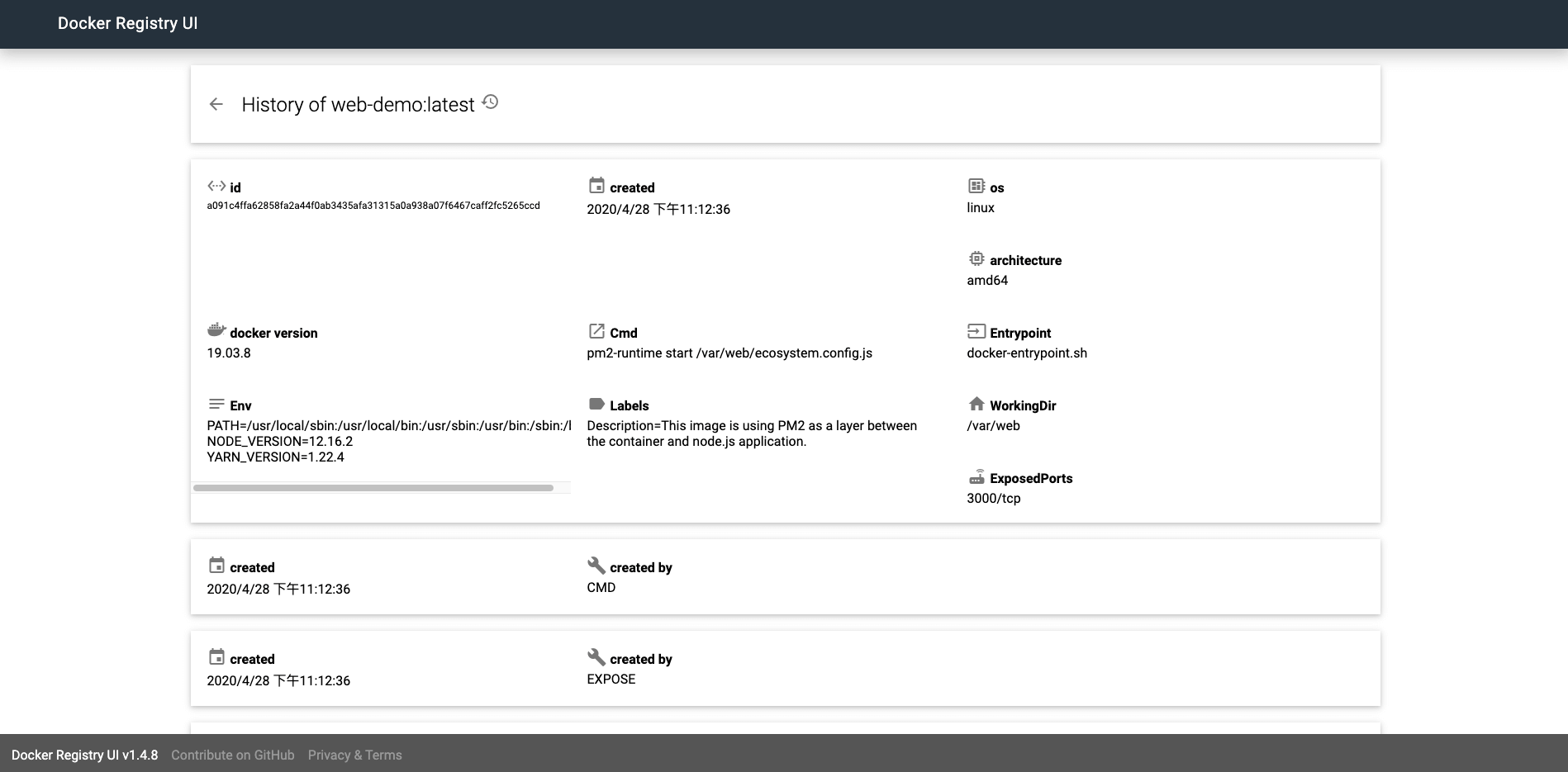 镜像构建历史: